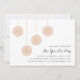 Elegant New Year's Eve party invitations feature hanging paper decor in blush pink and gold, with your party details in black calligraphy script and block lettering. Invitations reverse to a pattern of white stars on black.
