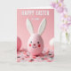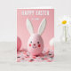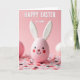 This design shows a rosy, egg-shaped bunny figure centered on a soft pink background, with long white ears and a simple face that feels friendly and affectionate 🐰. Its black dot eyes, red round cheeks, tiny crimson nose, and small curved smile give it the kind of sweet expression you might share with a close friend. The scene stays minimal, with the main bunny kept sharp while other similar shapes fade softly in the background, like companions nearby. Along the lower area, flat confetti circles in pink, pale blue, white, red, and deep gray scatter across the foreground, adding a light party feel 🌷. Near the top, white uppercase text reads “HAPPY EASTER,” and just below it, also in white, “MY FRIENDS,” both set clearly against the pink. Gentle, diffused lighting creates soft shadows around the bunny’s edges without making the scene look harsh. The final look includes a centered bunny with white ears, a pink field behind it, and multicolored circular confetti spread along the bottom.