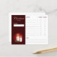 Helpful checklist for planning Christmas gifts for friends and loved ones. The design features Destei's festive illustration of white Christmas candles together with a Christmas Holly plant. The title reads: "Christmas gift list" and then there is space for the recipient's name and some notes. There are also sections for gift ideas, price, whether a gift has been bought or not and whether a gift has been wrapped. The accent color is red.