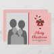 Festive Candy Cane On Pink With Custom Photo Holiday Card