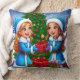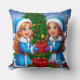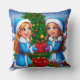 Festive Cartoon Scene of Two Friends Throw Pillow