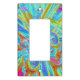 Festive Chartreuse and Blue Dahlia Flower Petals Light Switch Cover