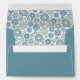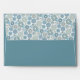 Pretty greeting card envelope with a decorative light, pastel, and dark blue colored floral snowflake pattern design.