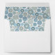 Pretty greeting card envelope with a decorative light, pastel, and dark blue colored floral snowflake pattern design.