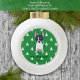 This cute chihuahua holiday ornament features a black and white dog centered on a lively green backdrop decorated with white Christmas tree icons. Customize the text for a personal family accent that stands out on any tree. A fun and festive choice for anyone who adores small dogs and bright seasonal designs.