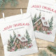 Add a festive touch to your holiday celebration with this Christmas treat or favor bag featuring a cozy watercolor winter cabin and forest scene. The design shows a snowy cabin nestled among pine trees and holly berries, with a wreath on the door and smoke gently rising from the chimney—bringing a warm and inviting holiday vibe.