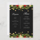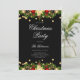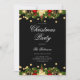 Elegant Christmas Holiday Party invitation with Program and Menu featuring Christmas Decorations & Glitter Confetti in Gold.