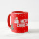 Celebrate the holiday season with our vibrant Christmas mug! Featuring a cheerful red background adorned with snowflakes, Christmas trees, and adorable snowmen, this mug brings festive joy to every sip. Perfect for hot cocoa, coffee, or tea, it's a delightful gift for loved ones.