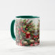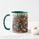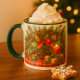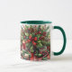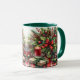 This festive, holiday-themed mug features a Christmas arrangement with a red bow and tartan plaid accents. While shown with a green handle, various color options are available to personalize this coffee mug to your liking.