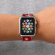 A pretty watch band in red and white with snowflakes to celebrate the holidays in cheery style.