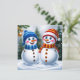Festive Christmas Snowmen in the Winter Forest Holiday Card