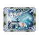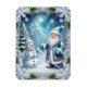 A magical winter scene featuring a beautifully detailed Father Frost with a snowman amidst a snowy landscape, set under a starry moonlit sky surrounded by frosty holiday decorations.