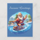 Festive Christmas surfing Santa add text Holiday Postcard