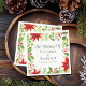 This classic red and green Christmas wedding napkin features traditional poinsettia flowers, holly berries and greenery creating a beautiful botanical border. A festive and bright table decor for a holiday wedding with elegant script.