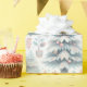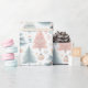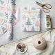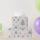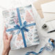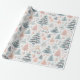 Delicate patterns of pastel trees and ornaments in soft hues create a whimsical backdrop perfect for holiday gift wrapping. The charming illustrations evoke a warm, festive spirit for the season.