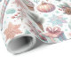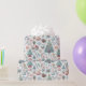 This cheerful wrapping paper features whimsical Christmas designs, including decorated trees, ornaments, and candy canes, perfect for holiday gift-giving and celebration.