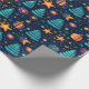 A colorful design featuring various Christmas ornaments and festive foliage on a dark background, perfect for wrapping gifts and spreading holiday cheer during the season.
