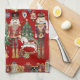 Festive Merry Christmas kitchen towel, with a Nutcracker Soldiers design. (c) The Happy Cat Studio