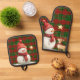 Festive Classic Red Green Gold Tartan Snowman Oven Mitt & Pot Holder Set