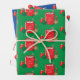 A cute set of 3 flat wrapping paper sheet with a festive hot cocoa mug pattern : one is green , one is white and one is blue . Perfect to wrap those Holiday gifts .