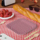Festive Cranberry Red Gingham Plaid Rustic Holiday Paper Plates