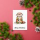 Festive Cute Christmas Otter Wrapped in Lights Foil Greeting Card