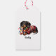 Celebrate the joy of the holiday season with our "Festive Dachshund Delight" gift tag! This vibrant depiction showcases an animated black dachshund playfully wrapped in colorful Christmas lights and donning a cozy holiday sweater. A perfect blend of charm and festive spirit, it's sure to be a delightful addition to any Christmas gift.