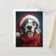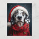 This adorable Dalmatian dog brings the holiday spirit to life, dressed in a cozy Santa Claus hat and red winter coat. With a gentle expression and snowy background, this portrait captures the warmth and charm of the season. Perfect for spreading holiday cheer!