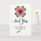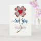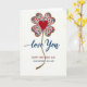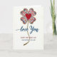 This card features a lucky-clover-like flower made from four heart-shaped petals, each filled with tiny blossoms in crimson, blue, lavender, and soft gray with small teal leaves. A sparkling gold glitter outline traces each petal and continues downward into a gently wavy stem, giving the design a dressed-up, celebratory shine. In the center sits a single deep scarlet heart, drawing the eye like a quiet sign of affection ❤️. Beneath the flower, the words “love You” appear in flowing cerulean blue lettering, placed neatly under the stem. Farther down, “HAPPY MOTHER’S DAY” is set in bright red, with “DAUGHTER IN LAW” printed below it in a matching blue. The creamy off-white background leaves plenty of open space, making the colors feel close and tender, like a warm glance shared between family members 👩. The gold glitter edges catch the light around the petals, and the undulating stem leads the eye straight to the stacked text below.