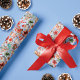 The color palette is a cheerful blend of red, green, blue, brown, and white, mirroring the festive hues of the holiday season. This combination radiates warmth, joy, and a hint of nostalgia, making your gift wrapping a true celebration.