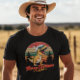 A playful dinosaur dons a Santa hat and stylish sunglasses, bringing a touch of holiday cheer with a cool twist to the prehistoric era.