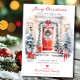 This festive moving announcement features the saying "Merry Christmas from Our New Home" with a beautiful watercolor red front door adorned with Christmas trees and wreath. The announcement is perfect for sending to friends and family during the holiday season to let them know about your new address. The front of the announcement features the saying and watercolor red front door, and includes your new address and contact information. The overall design is festive and inviting, and the announcement is sure to put a smile on the faces of your loved ones.