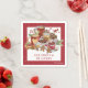 Festive Personalized Christmas Napkins - Design features an array of watercolor illustrations of winter hot drinks and christmas sweet treats, the text Eat, Drink and Be Merry and family name.