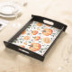 Serving tray in a fall-themed pattern featuring vibrant orange pumpkins intertwined with blooming chrysanthemums in warm yellow and orange hues, creating a festive harvest-inspired design