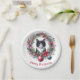 If you love cats and Christmas, you will love this design on paper plates. It features a cute black and white kitten sitting in a wreath of Christmas decorations. The wreath is made up of pine branches, and red flowers and ornaments. This design is perfect for cat lovers and is great for the holiday season.