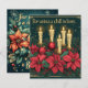 Encircling the candles is a lush arrangement of red poinsettias, holly sprigs, pine branches, and clusters of vibrant red berries, all set against a deep green background. Golden ornaments, delicate snowflakes, and ornate corner decorations add sophistication and festivity, making this design perfect for holiday-themed projects. The blend of candlelight, rich greenery, and classic Christmas decor captures the essence of the season, ideal for religious-themed scrapbooking, holiday crafts, or seasonal decor.
