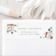 Elegant watercolor flowers design of white roses, pine cones, berries and eucalyptus greenery, with modern stylish script. Festive palettes of red, sage green, and white, Great personalized return address labels for holiday Christmas wedding, country garden wedding, and boho floral wedding in winter.