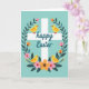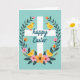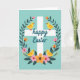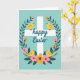 Designed with a crisp white cross at the center, this card frames it with a neat wreath of deep teal leaves and spring flowers. Soft pink blooms and warm orange blossoms curl outward, like a bouquet arranged for someone you care about 🌷. Four bright yellow birds rest along the cross, their tiny red beaks and dark eyes angled toward one another in a way that feels like quiet companionship 🐇. The background is a soft aqua wash that keeps the scene calm while letting the white and yellow details stand out. Across the middle of the cross, two words appear in flowing teal lettering, placed so they sit neatly over the vertical and horizontal arms. The shapes are simple with flat color areas and clear outlines, giving everything a modern, graphic look. Deep teal leaves form a balanced ring around the cross, with blossoms spaced evenly between the perched birds.