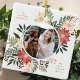 festive floral modern merry christmas photo ceramic ornament