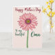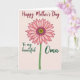 The front design shows a large daisy-like flower centered on a pale blush background, with soft pink petals shaded for a gentle, affectionate look ❤️. The flower’s middle is golden yellow with a ring of deep purple, drawing your eye in like a quiet moment of closeness. A slim green stem drops straight down from the bloom, giving the layout a calm, steady balance. Across the top, a flowing line of deep crimson text sits like a crown above the petals. Near the bottom, smaller emerald-green text is split into two parts, with “To my beautiful” placed on the lower left and “Oma” on the lower right, as if the words are reaching toward each other. The soft pink, warm yellow, rich purple, and fresh green work together like a bouquet offered with care 🌼. The background stays a smooth, even blush tone, letting the centered flower and the two-tone lettering stand out clearly.
