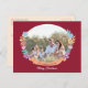 Festive Floral Wreath Dark Red Photo Holiday Postcard