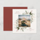 Festive Holiday Botanical Foliage Frame, flat photo card. Features, rustic red color typography and matching solid color backing.