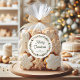 Festive Foliage Wreath, holiday sticker. Soft Beige color background and coordinating green color text.