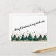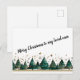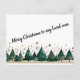 This charming Christmas postcard captures the holiday spirit with a touch of playful elegance. Across the lower half, a row of stylized evergreen trees stands in joyful assembly, their branches adorned with whimsical icons like stars and snowflakes. The trees vary in size, creating a delightful sense of rhythm and movement, as if they are swaying to a silent Christmas melody. Above this festive gathering, the greeting "Merry Christmas to my loved ones" is written in a flowing, cursive font, adding a personal touch to this season's tidings. The background is a pristine white, ensuring that the intricate details of the trees and the heartfelt message take center stage.