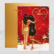 Two friends in glamorous dresses, one in gold and the other in black, share a warm embrace amidst a festive Christmas setting. The scene is adorned with twinkling lights, a beautifully decorated Christmas tree, and a heartfelt birthday message for a best friend.