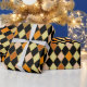 Fun retro diamond seamless pattern in soft warm earthy tones of orange, pink, brown and beige with faux gold border on black background, for the October / November fall festivities, holiday season gift wrapping, birthdays or any other occasion.