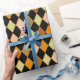 Festive Fun Retro Orange Black Diamond Pattern Wrapping Paper