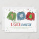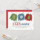 Plain white envelopes are included with paper invitations and will come to fit the invitation size you select. If you don’t need the envelopes, you may choose to not receive them by selecting the dropdown below "Envelopes" and choosing "None." If you’d like to have a design on your envelopes, you can browse all of these available envelopes to find the design that complements your Festive Funny Ugly Sweater Christmas Invitation.