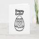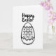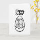 This card features a black-and-white illustration on a white background, centered on an egg-shaped outline with a jagged crack along the top, like it’s just beginning to open 🐰. Inside the egg, a familiar 3x3 grid game is drawn with a mix of Xs and Os, suggesting two friends leaning into a small, friendly challenge. A dashed line traces around the egg’s outer edge, adding a casual, sketched border that feels like it was drawn with care. Beneath the egg, light cross-hatching sits like a soft shadow, grounding the shape without adding extra scenery. Near the top, the greeting “Happy Easter” is placed above the egg in black, flowing lettering with a brush-like look 🌷. The strong black lines against the white space keep the design simple while still feeling warm and inviting, like a note shared between close people. The cracked top edge and the game grid remain the main focus, with the dashed outline and cross-hatched shadow providing the only extra details.