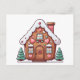 A cozy gingerbread house illustration decorated with hearts, snow, and a festive wreath on the door.